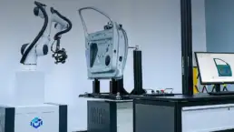 AUTOSCAN is a mobile inspection station equipped with a collaborative robot, a motorized rotation table, and powerful software. It helps capture quality information quickly and accurately through the laser-based SIMSCAN 3D scanner, enabling fast and reliable full surface measurement of parts. With the help of a collaborative robot and motorized table, the part can rotate and the scanner can be moved simultaneously to optimise scanning time and speed up the quality control process. Digitizing is completed in Eleven Dynamics planning and measurement software which can be integrated into a number of world-leading inspection platforms, including, Polyworks, Geomagic and Zeiss GOM Suite.